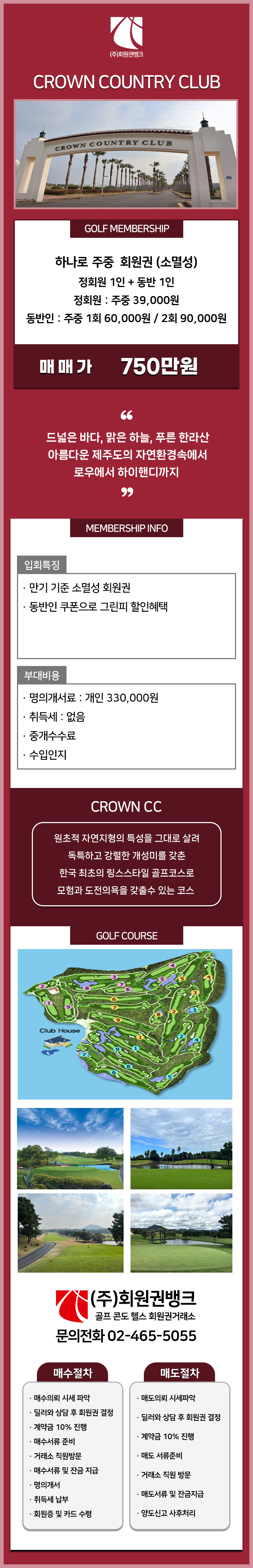 Å©¶ó¿î °ñÇÁÀåÀº Àü±¹¿¡¼µµ ¼Õ²Å´Â ¾Æ¸§´Ù¿î ÄÚ½º·Î ¿©·¯ °í°´´Ôµé¿¡°Ô Àß ¾Ë·ÁÁ® ÀÖ½À´Ï´Ù. õÇýÀÇ °ü±¤ÀÚ¿øÀÌ ÀÖ´Â Á¦ÁÖµµ¿¡ ¾Ë¸Â°Ô ÄÚ½ºÀÇ ¾Æ¸§´Ù¿òÀ» ÃÖ´ëÇÑ »ì¸° °ñÇÁÀåÀ¸·Î½á ÀÚ¿¬±×´ë·Î¿¡°Ô ÄÚ½º¸¦ ¼³°èÇÏ¿© °¡Àå ¾Æ¸§´Ù¿î °ñÇÁÀå Áß ÇÑ °÷À̶ó ÇÒ ¼ö ÀÖ½À´Ï´Ù.¾ðµâ·¹À̼Ç(Undulation)À» ±×´ë·Î »ì·Á ÀÚ¿¬°úÀÇ Àý¹¦ÇÑ Á¶È¸¦ ÀÌ·ëÀ¸·Î½á ¹«ÇÑÇÑ µµÀü¼º°ú Àü·«ÀÌ ¼û°ÜÁ® ÆÄ¿ö¿Í Å×Å©´Ð,±×¸®°í ºÎµå·¯¿òÀ» ¿ä±¸ÇÏ´Â °³¼ºÀÌ °ÇÑ °ñÇÁÄÚ½ºÀÔ´Ï´Ù.Áö¸®Àû ¿©°Ç ¶ÇÇÑ Á¦ÁÖ Á¦ÀÏÀÇ À§Ä¡ÀÔ´Ï´Ù. ÇÔ´öÇØ¼ö¿åÀå ¿·¿¡ À§Ä¡ÇØ ¿©¸§¿¡ ¼´ÃÇÑ ¹Ù¶÷ÀÌ ºÒ°í °Ü¿ï¿¡´Â ¹Ù¶÷ÀÌ ¾ø¾î µû¶æÇÑ °ñÇÁÀåÀ¸·Î ´«¿¡ ÀÇÇÑ ÈÞÀåÀÏÀÌ °ÅÀǾø°í Á¦ÁÖ¿¡¼ °¡Àå °³ÀåÀ²ÀÌ ³ôÀº °ñÇÁÀåÀÔ´Ï´Ù .